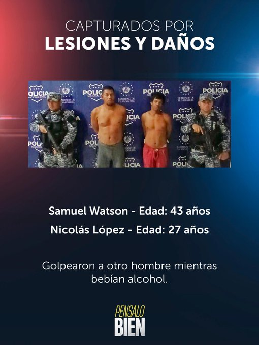 La Policía Nacional Civil informó sobre la captura de dos hombres de nacionalidad nicaragüense acusados de causar lesiones a otra persona y daños a un teléfono celular, en un hecho ocurrido mientras los tres involucrados consumían bebidas alcohólicas.