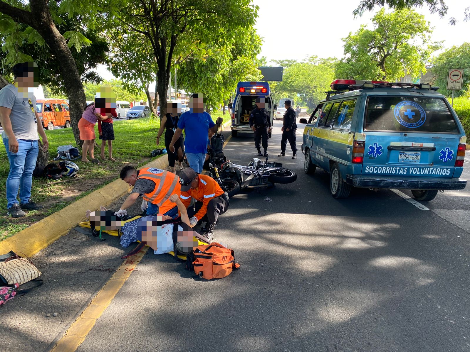 Socorristas de Cruz Azul, seccional Santa Ana Centro, atendieron a cinco personas que resultaron atropelladas en las cercanías de la plaza Zarzamora, sobre el bulevar Nicolás Salume, en sentido de Metrocentro hacia el redondel de la UNICAES.
