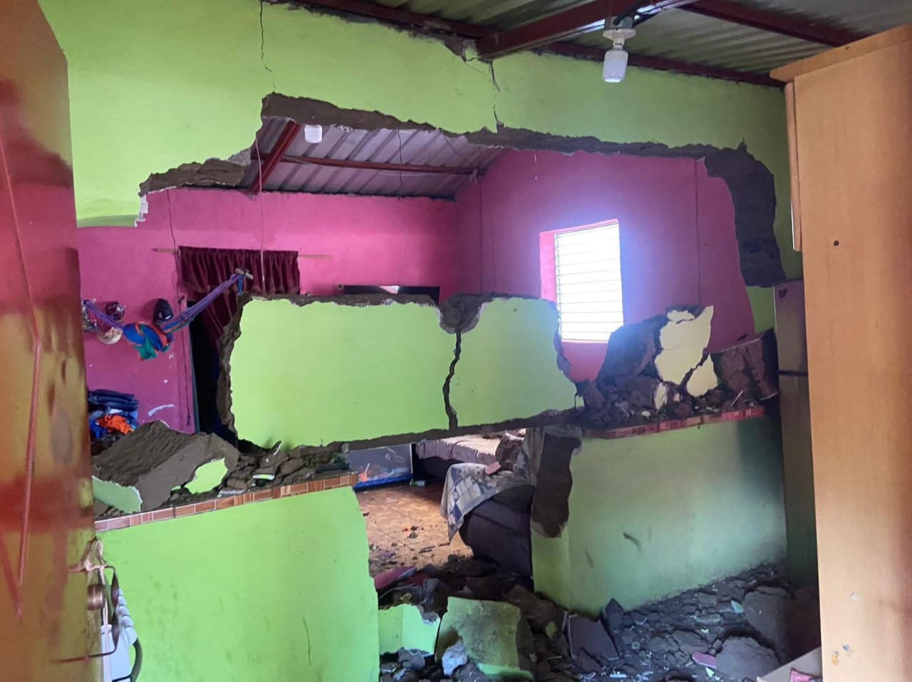 Las paredes de la vivienda cedieron por la fuerza del movimiento telúrico, mientras que fieles reportaron grietas estructurales y desprendimientos en la iglesia parroquial de ese municipio.