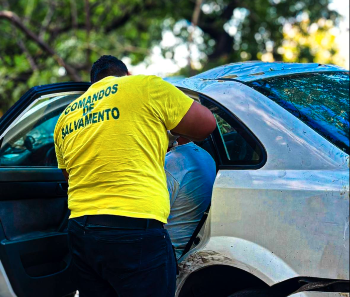De acuerdo con el informe de Comandos de Salvamento, el percance ocurrió luego de que el conductor perdiera el control del vehículo, provocando el incidente.