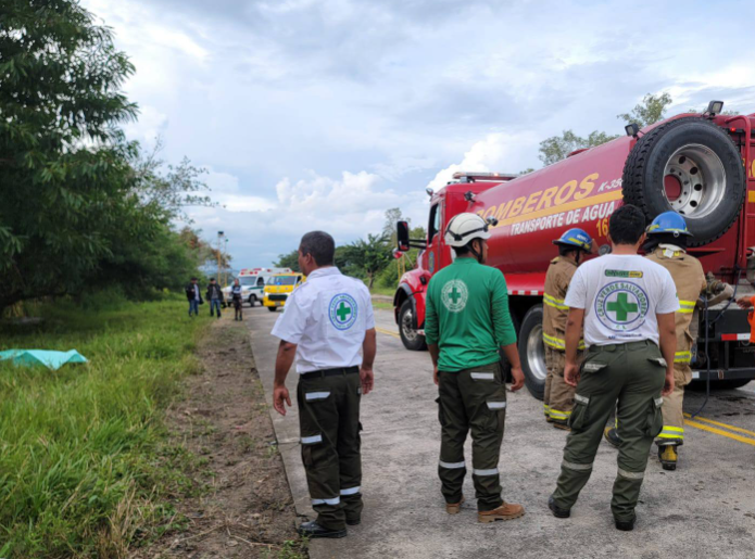 El impacto provocó que la motocicleta se incendiara. Al lugar acudieron Comandos de Salvamento, miembros del Cuerpo de Bomberos de El Salvador y agentes de la Policía Nacional Civil (PNC) para confirmar el deceso y sofocar las llamas.