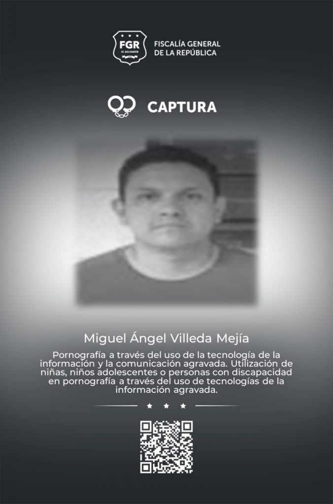 Uno de los capturados es Miguel Ángel Villeda Mejía, profesor de educación física, acusado de pornografía a través del uso de tecnología de la información y la comunicación agravada, entre otros delitos. Según las investigaciones, entre 2023 y 2024 persuadió con engaños a una estudiante del centro escolar donde trabajaba para que le enviara fotografías, amenazándola para que no denunciara lo ocurrido. La situación fue descubierta por la madre de la víctima, quien interpuso la denuncia.