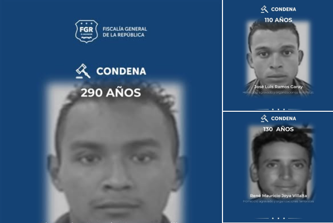 La Fiscalía General de la República (FGR) informó que varios pandilleros pertenecientes a la clica Pinos Locos Salvatruchos, de la MS, fueron condenados a penas de hasta 290 años de prisión por una serie de delitos cometidos en distintos cantones y colonias de los departamentos de La Unión y Morazán.