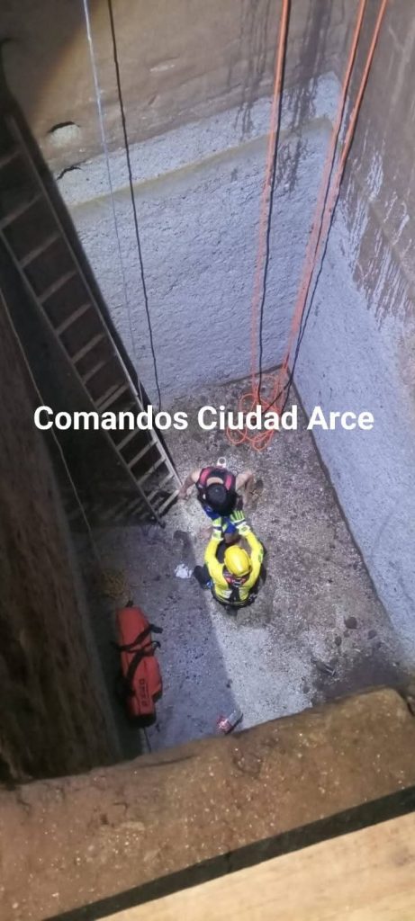De acuerdo con Comandos de Salvamento de Ciudad Arce, al llegar a la escena encontraron a un hombre atrapado en la fosa. Con equipo especializado de rescate vertical realizaron las maniobras necesarias para sacarlo del interior.