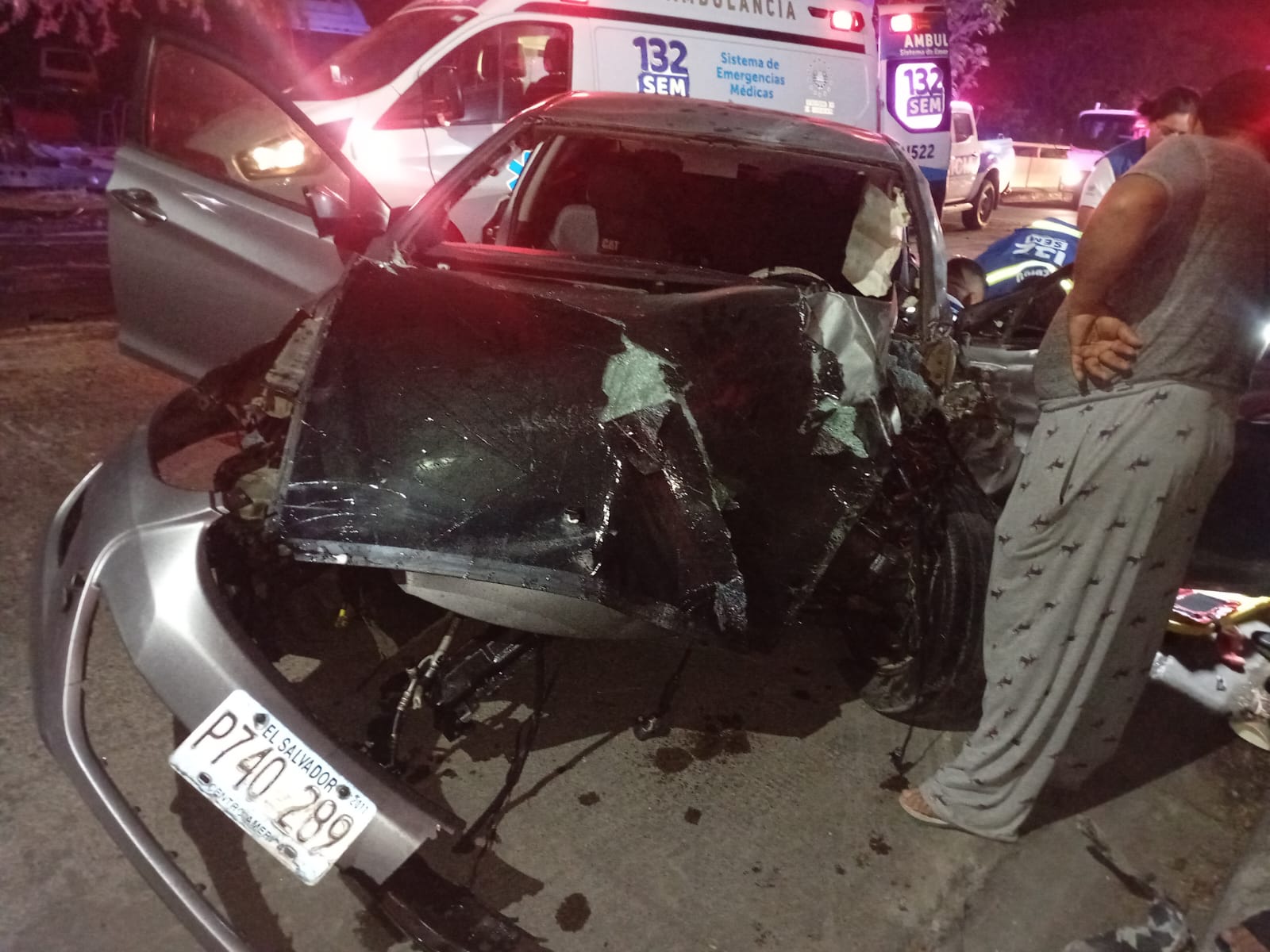 La magnitud del impacto fue tal que el motor del vehículo salió expulsado, quedando a varios metros del punto de colisión, lo que evidencia la violencia del siniestro.