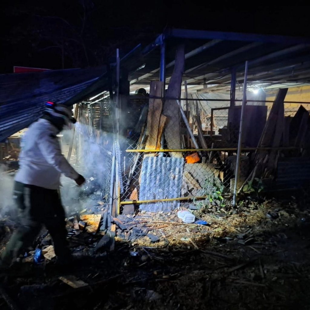 San Salvador Norte, 28 de febrero de 2026. — Instituciones de primera respuesta atendieron un incendio estructural registrado en una carpintería ubicada en el kilómetro 35 ½ de la Carretera Troncal del Norte, en el distrito de Aguilares, jurisdicción de Aguilares.