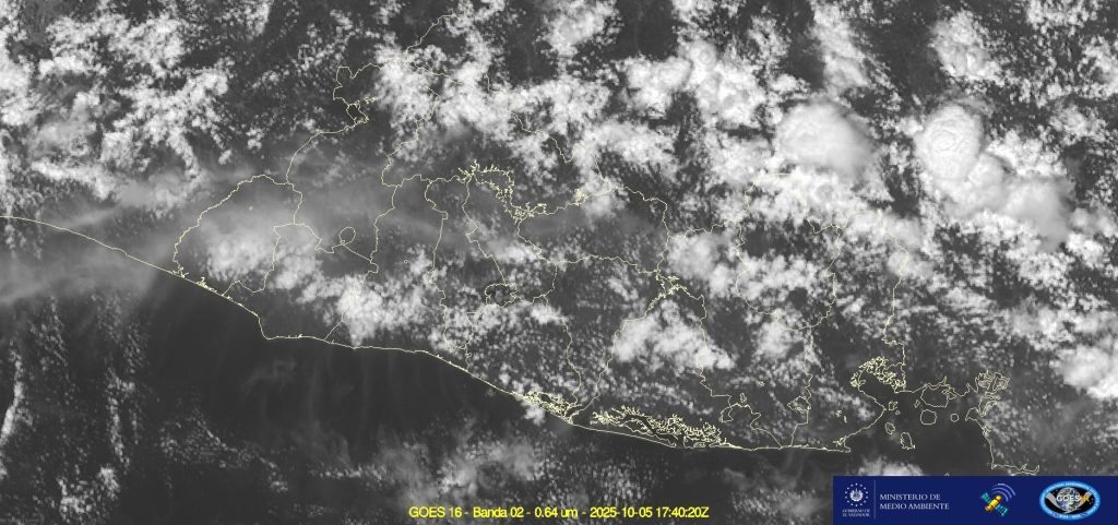 San Salvador. El Ministerio de Medio Ambiente y Recursos Naturales (MARN) informó que este sábado el cielo se mantiene parcialmente nublado en gran parte del país, con mayor concentración de nubosidad en zonas altas, especialmente en la región nororiental y la sierra de Tecapa–Berlín.