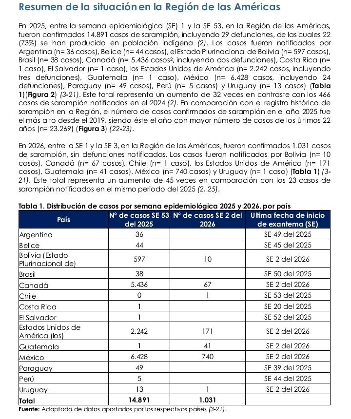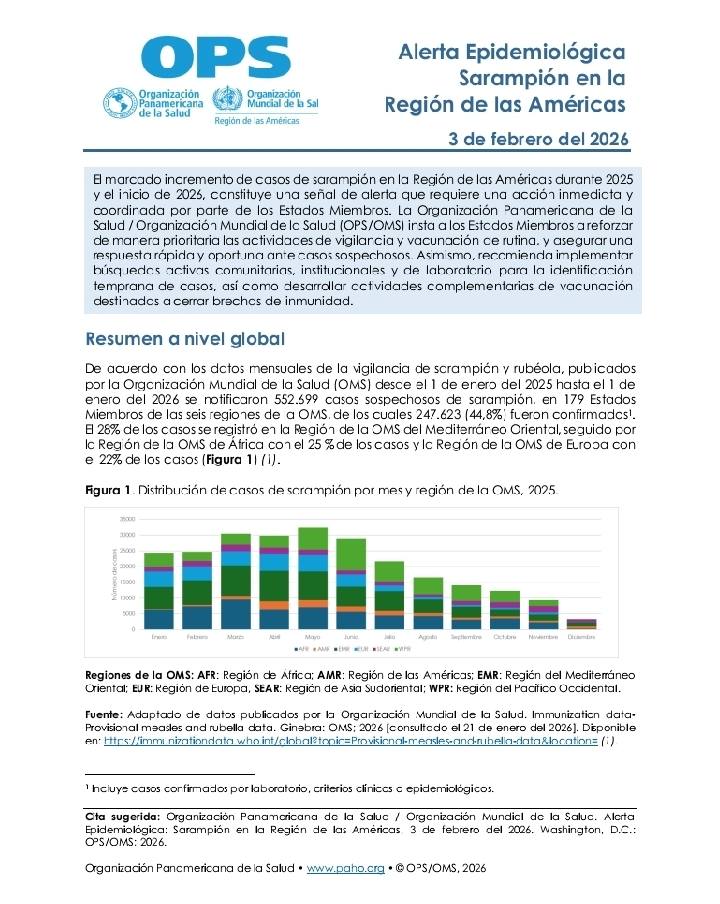 La OPS declaró una alerta epidemiológica regional, ante el incremento de casos en varios países, por lo que se recomienda a la población tomar las precauciones necesarias, mantenerse informada a través de canales oficiales y consultar de inmediato a un centro de salud ante la aparición de síntomas compatibles.