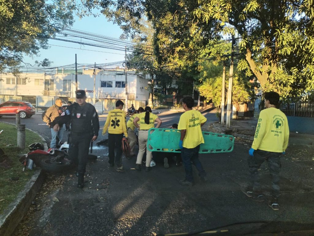 Tras el impacto, Edwin Alexander Campos fue atendido por Comandos de Salvamento y posteriormente trasladado al Instituto Salvadoreño del Seguro Social (ISSS) para recibir atención médica especializada. En el accidente también resultó lesionada Marcela Jasmin Hidalgo de González, de 38 años, quien fue trasladada al Hospital Zacamil.
