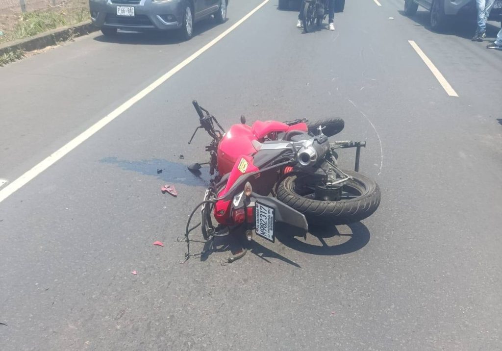 Un motociclista resultó lesionado tras un accidente de tránsito ocurrido sobre la carretera que conecta Chalchuapa con Santa Ana, a la altura de la residencial Ecoterra.